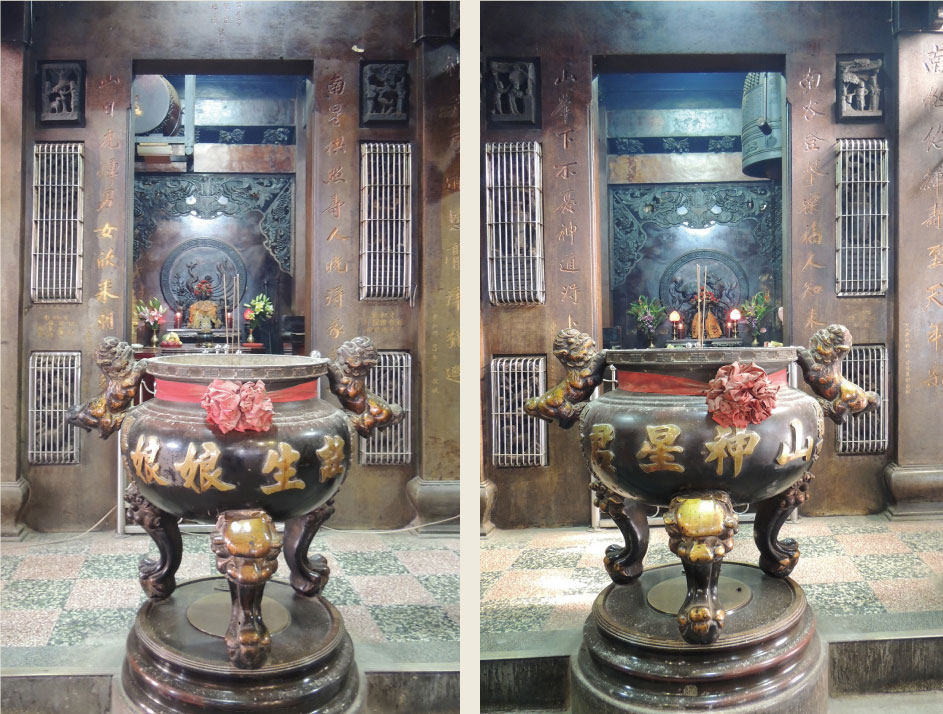 中門對聯 (南觀勝景天工築造烘爐地‧山聳神居人願遂成福德宮)-